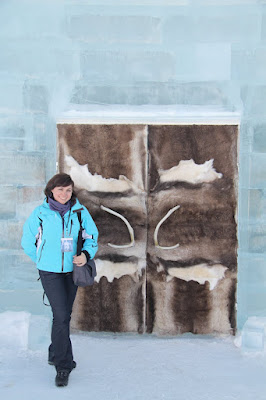 Our first night in Kiruna we stayed in the Ice Hotel, which is a hotel carved out of blocks of ice and the overnight stay is on beds made from blocks of ice and reindeer hide.